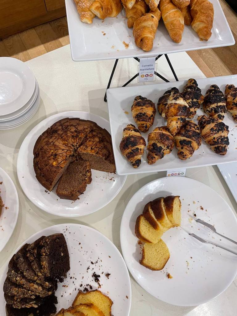 When you observe Italians outside of Italy, you notice that they can never go for a meal without grabbing dessert. I don’t know the reason for this, but it could do with the fact that their breakfasts are super sugary. I struggled to find brunch spots that serve “white girl food” like poached eggs and avotoast14. Instead it seems like most Italian breakfast places only serve cornettos15. Below are a few photos from breakfast buffets at hotels (which were theoretically international food). The only savory options (save for cured meats) you can see on my plates: