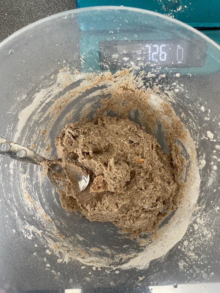 • 120 g 100% hydration wholemeal wheat levain