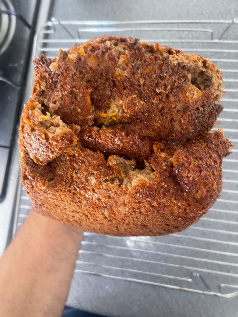 Taste wise: I enjoyed the carrot flavor (I did achieve the sweet savory flavor I was looking for, as some of the salt embedded itself into the carrots!). The crust was excellent. However, I struggled to eat the insides of the bread, and half the time I was wondering if I was just having a raw product…