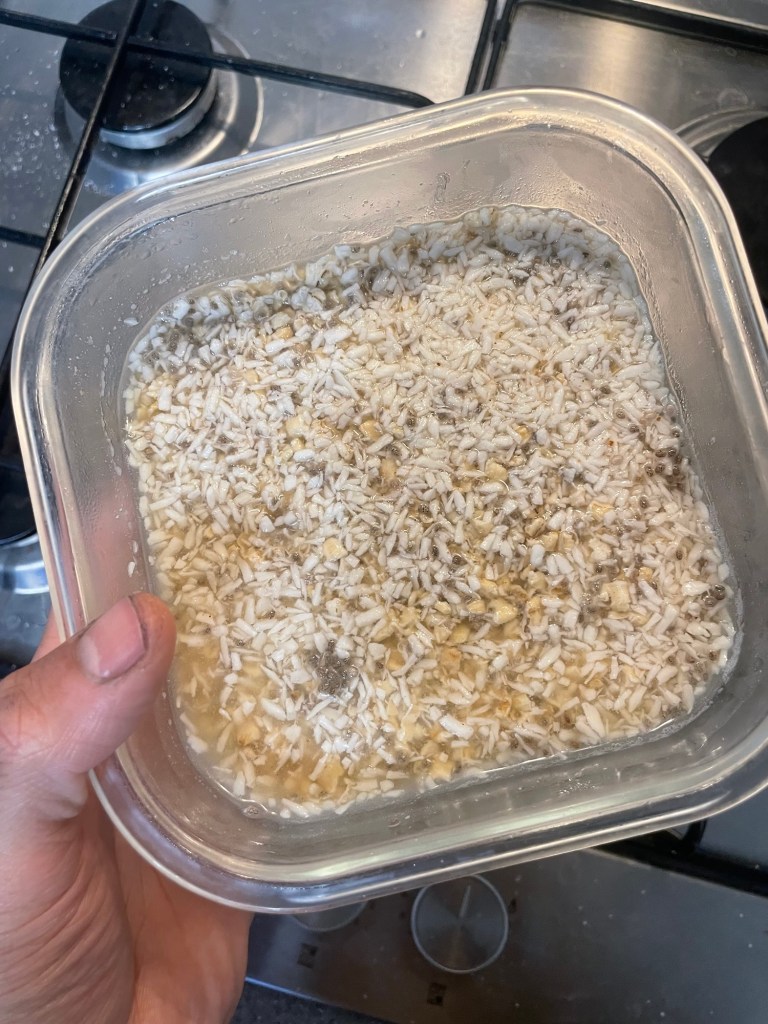 We met at the bike shop for a rather late (by cyclist standards) 7 am depart. I’d started my day an hour earlier with my morning mobility routine, and a nice slow releasing carby breakfast: overnight oats with coconut flakes and chia seeds, and a slice of the rye loaf which had turned out excellent.