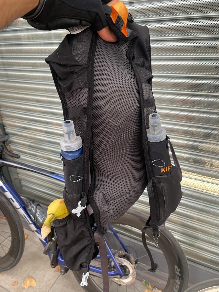 Mike carried everything in his cycling jersey. These come with deep pockets allowing one to carry essentials for the ride. As I was carrying more gear, I used my running vest. On the front pouches I had two 250ml water bottles, my phone and the banana. In the rear pocket, I had the halva tupperware, and in the pocket where the water bladder is meant to go I had the bread, a powerbank and a cable. I also fit something very important: a microfibre towel and swimming trunks… because I wasn’t gonna haul my ass to Brighton on a beautiful day and NOT dip in the sea!