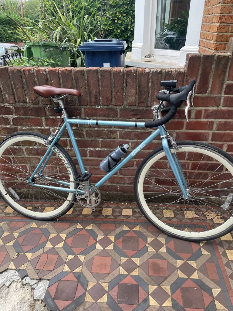 If you read about my conquest of North London’s Hills, you’ll already know about Pixie1! She’s a Quella Varsity Cambridge with the classic handlebars. But you may notice she’s had a bit of a makeover: I got her some dropbars2!