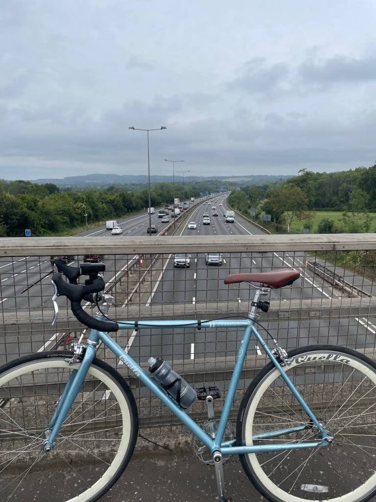 We cycled on until a bridge on White Hill Lane took us over the M25. We had officially left London.