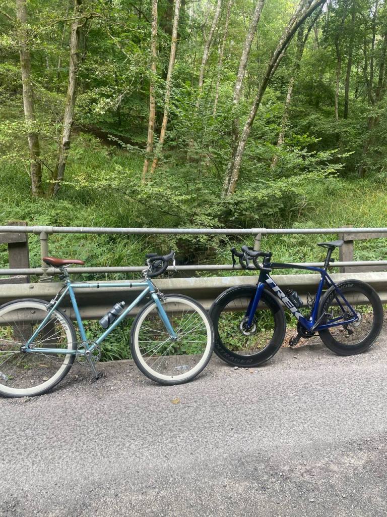 In the end, it was just Mike and I on the ride, and below is a photo of our bikes, Orion and Pixie, side by side: