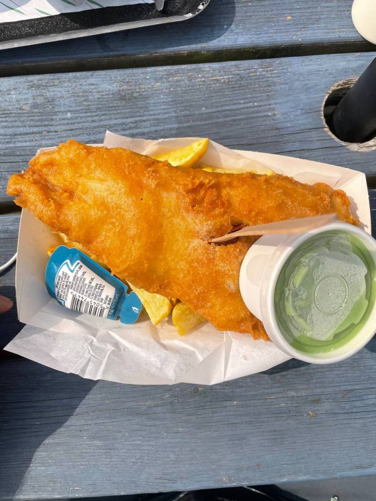Mike got a nice burger, and I, despite knowing full well the consequences, got fish and chips, because hey, it was my first time to Brighton, and I did it by bike, and fish and chips on the seafront just felt right!
