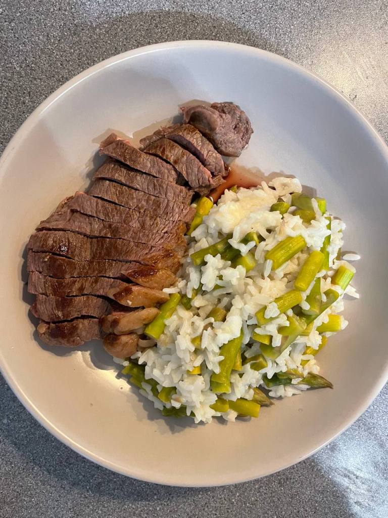 I treated myself to a lovely asparagus and lemon risotto, with a nice serving of steak for dinner.