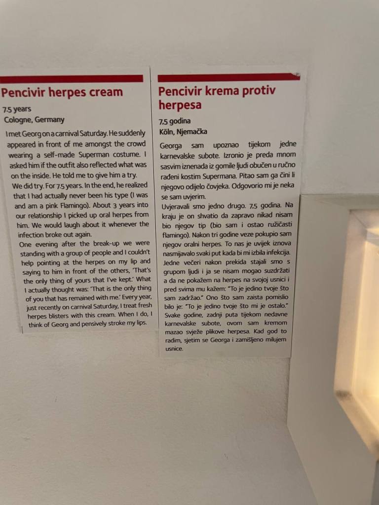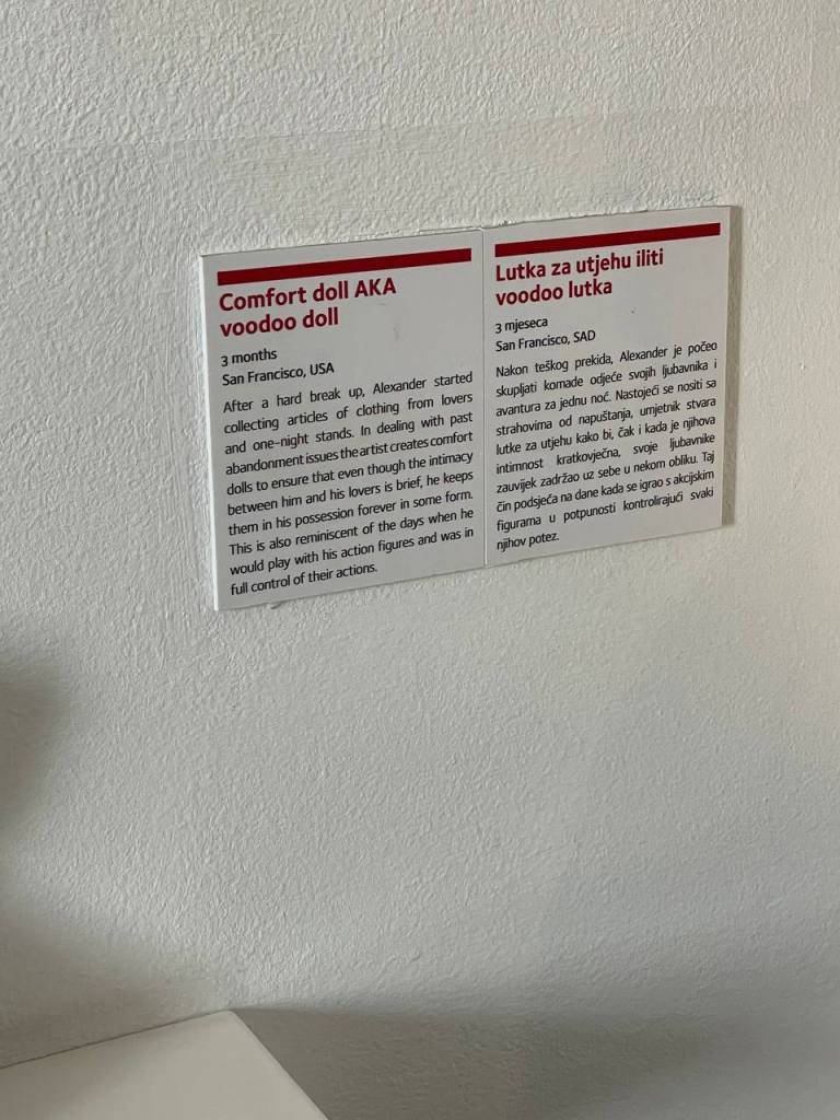 The most interesting of these is the Museum of the Broken Relationships. It is a collection of items that remained after mostly romantic breakups, whose possessors chose to finally donate, either as a way to grieve or for “sheer exhibitionism”. I would highly recommend visiting this museum regardless of your relationship status. It really is fascinating, and it’s almost impossible to get distracted like one does in other museums… every room held around 80-95% of my attention!