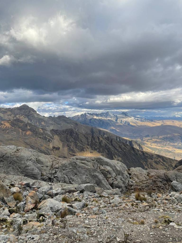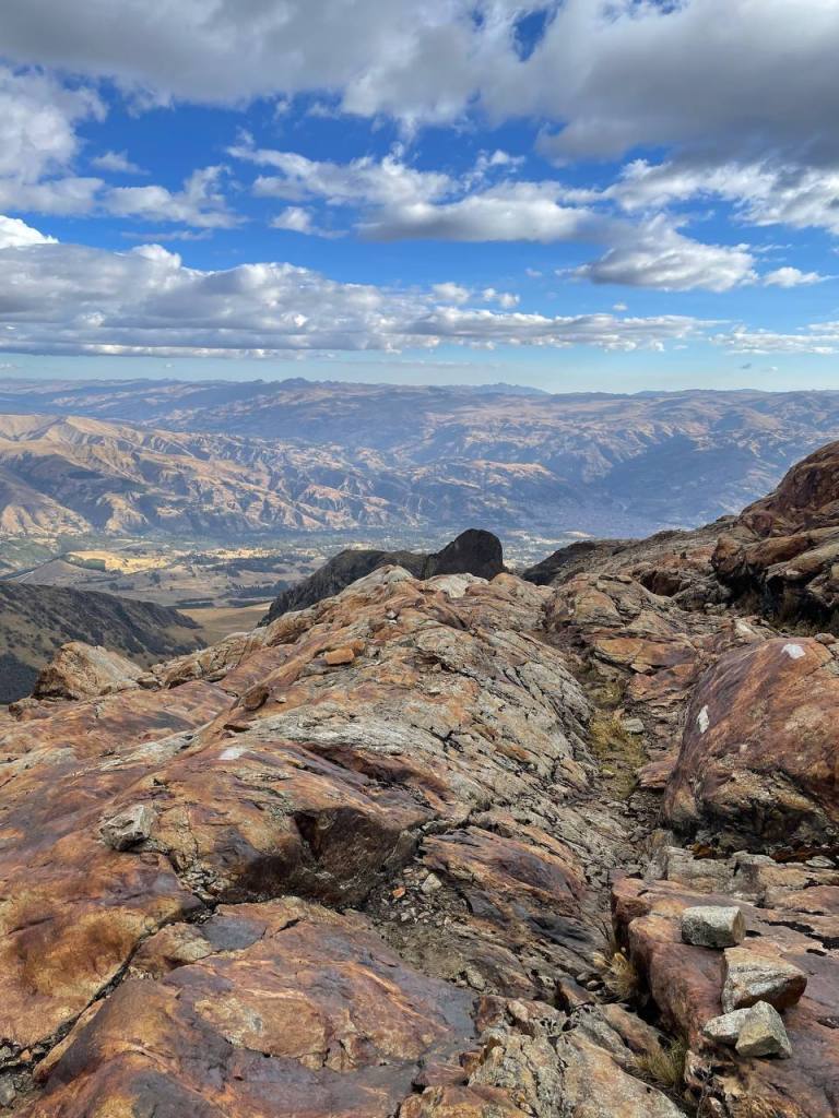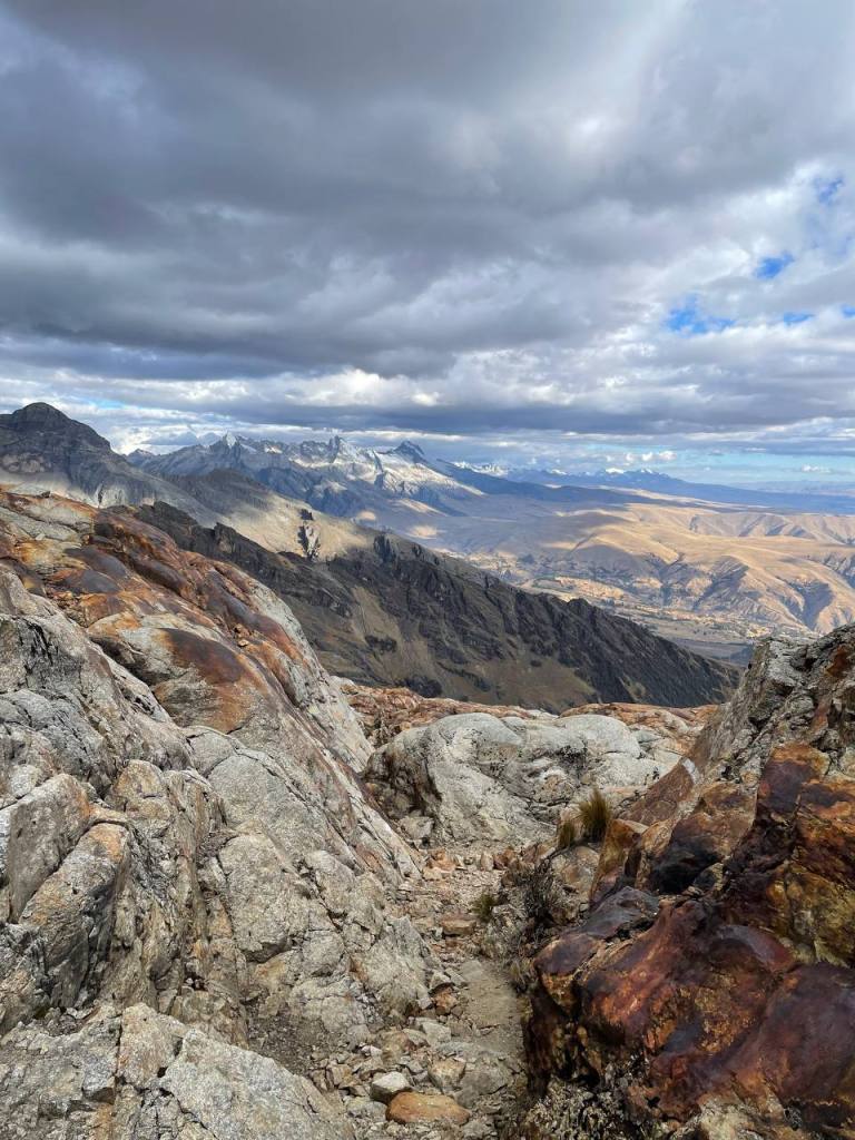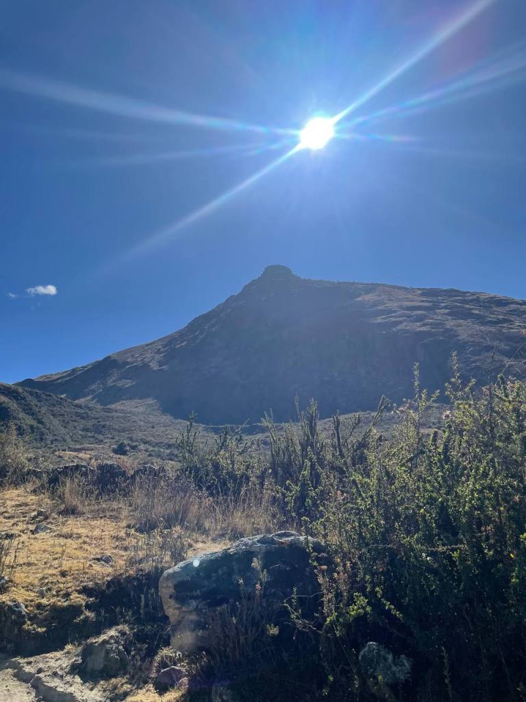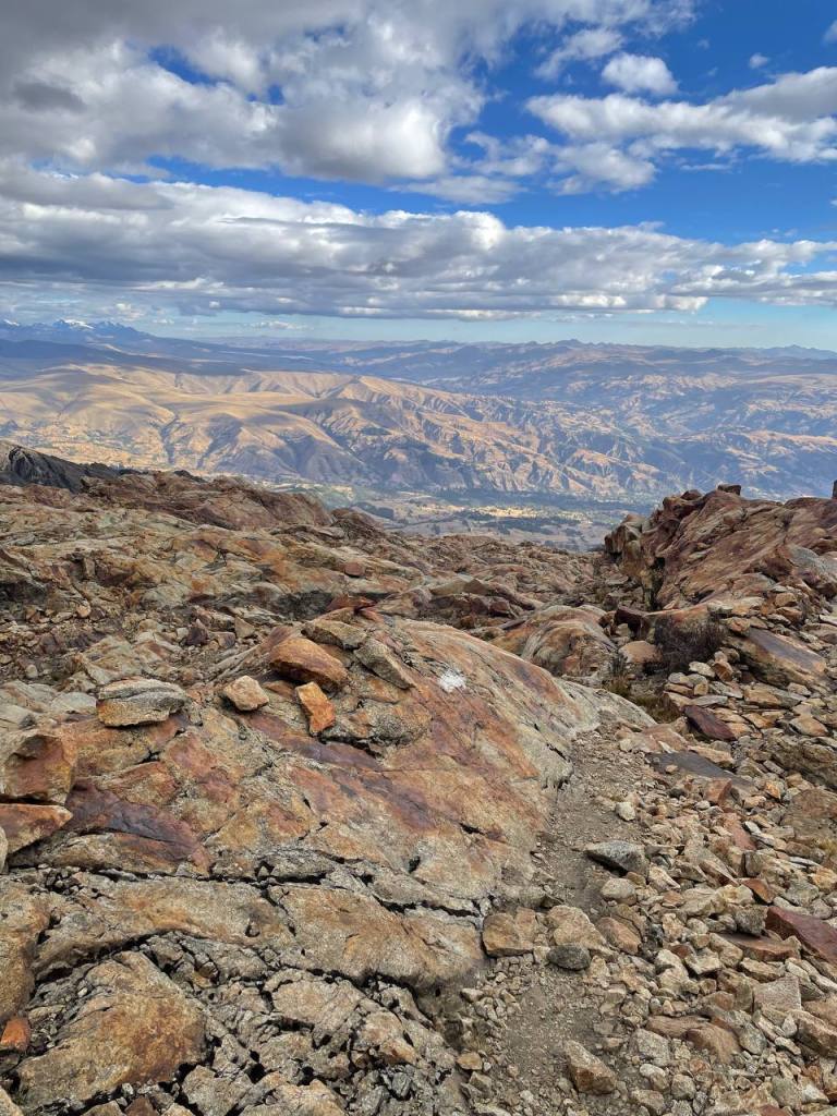 There was no time to enjoy the moment – my legs walked on. It was a strange state of flow to be in, because while my conscious thoughts were occupied by my sympathetic nervous system getting me down, my subconscious was really taking in the scenery. I hadn’t expected the scenery to get any better, but being on top of the mountains felt like I was on the roof of the world! I could see so much in front of me, and it seemed like the sun was almost at my level, gently caressing the red rocks that I walked on. It really was a magical sight, and much more magical than anything I was to later see at Huayhuash.
