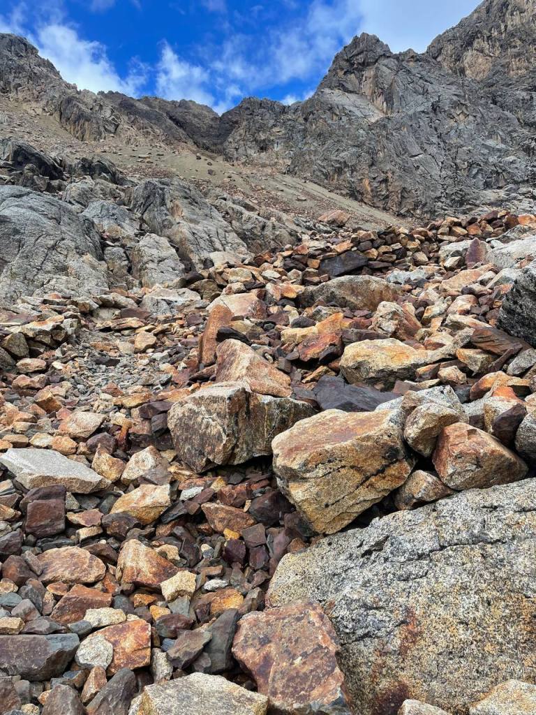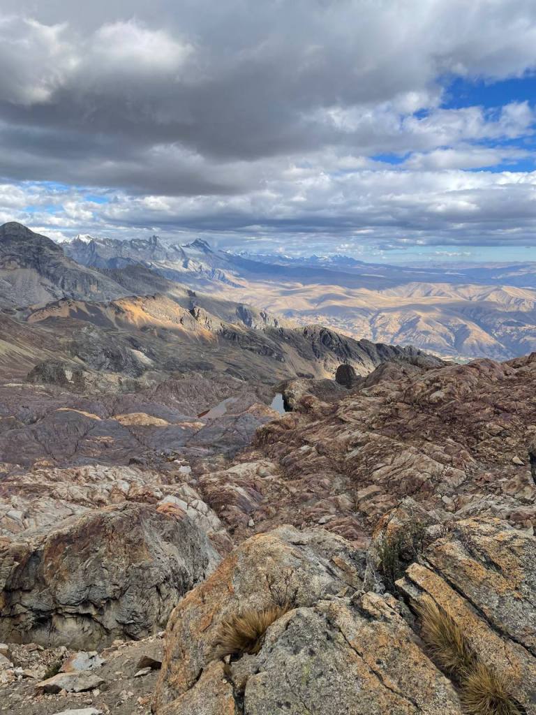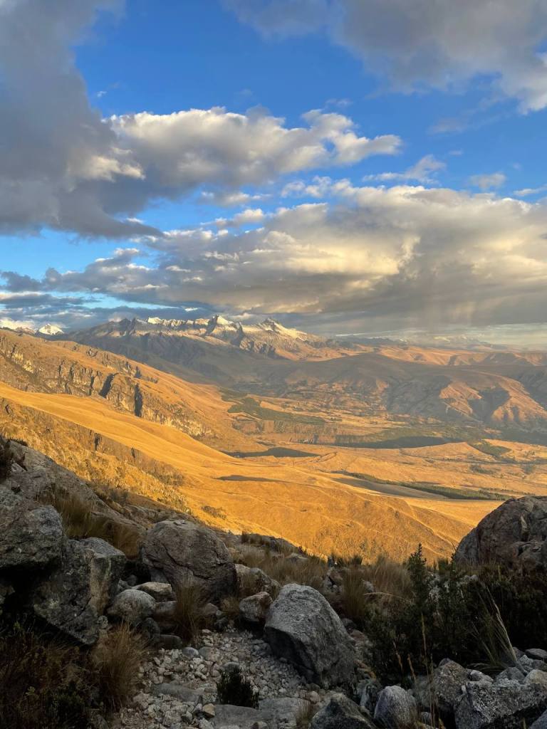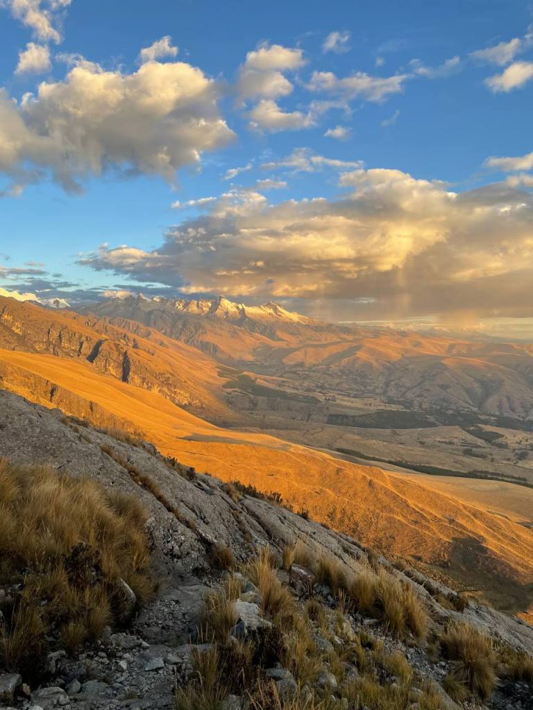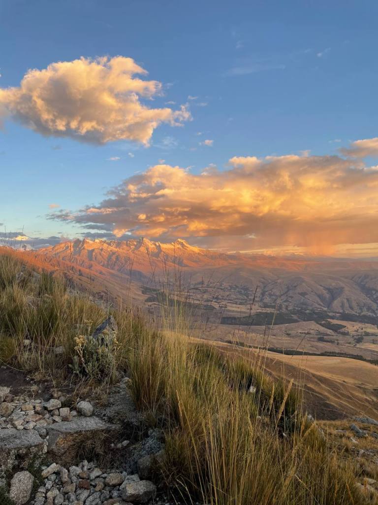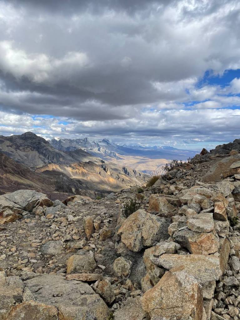 There was no time to enjoy the moment – my legs walked on. It was a strange state of flow to be in, because while my conscious thoughts were occupied by my sympathetic nervous system getting me down, my subconscious was really taking in the scenery. I hadn’t expected the scenery to get any better, but being on top of the mountains felt like I was on the roof of the world! I could see so much in front of me, and it seemed like the sun was almost at my level, gently caressing the red rocks that I walked on. It really was a magical sight, and much more magical than anything I was to later see at Huayhuash.
