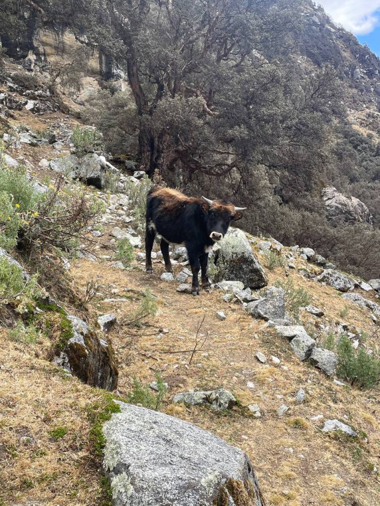 Soon after my attempted nap I saw the first sign on the trail: zona silvestra, and almost immediately after it the first sign of life: a bull gawking at me. I stared back, while I cautiously circled it, thinking to myself that he’s the asshole responsible for the shit on the trail.