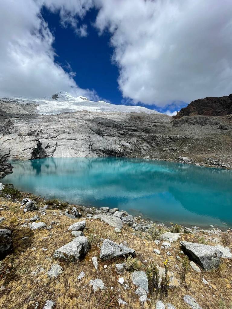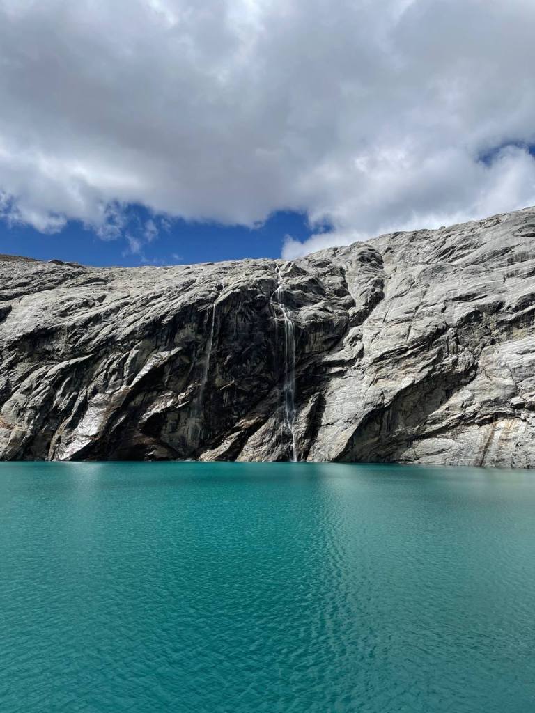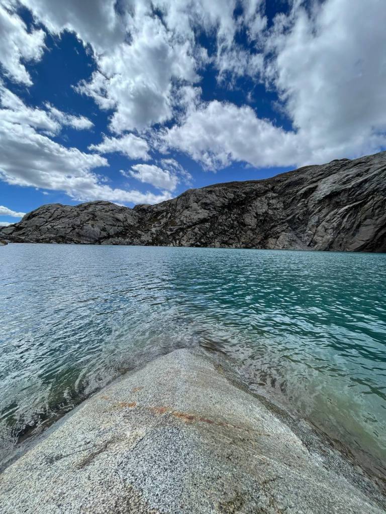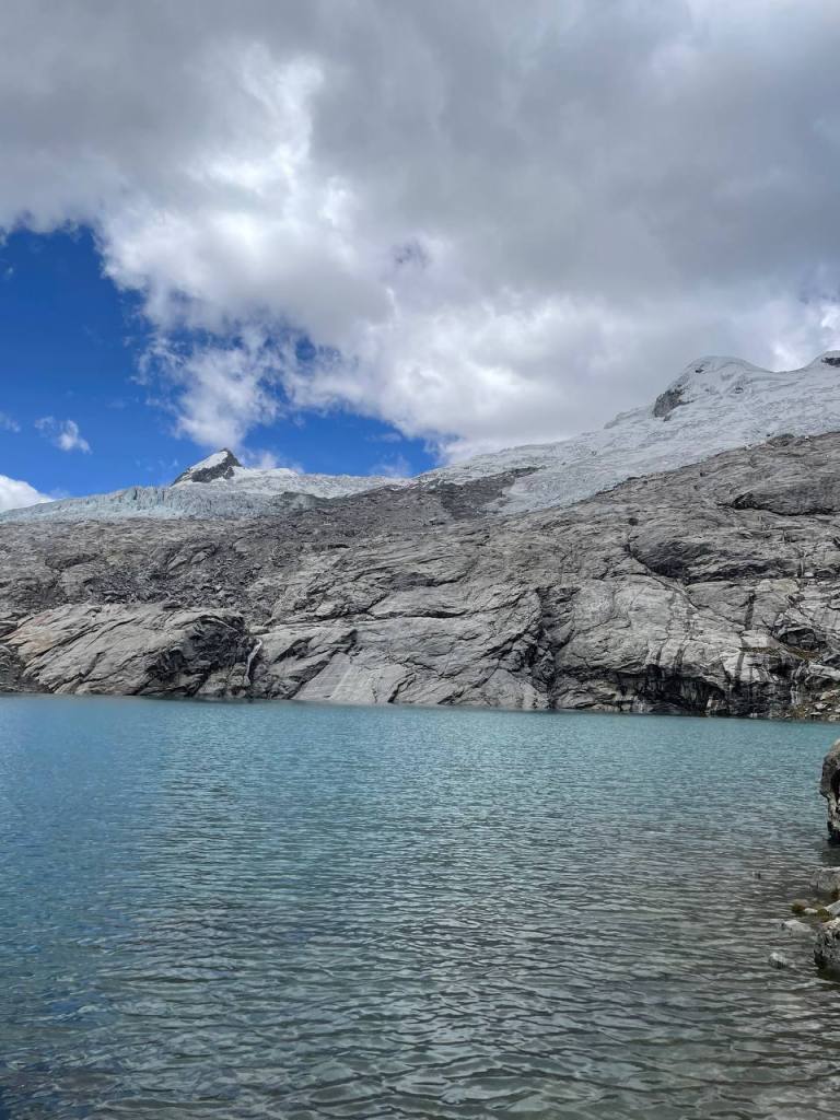 I was soon able to see the lake, but I was adamant to see it up close. So I kept going until I reached its edge. It was considerably colder than Mulluca, both due to being higher and shielded from the sun by the mountains. I knelt, stared at the glacier in front of me and prayed.