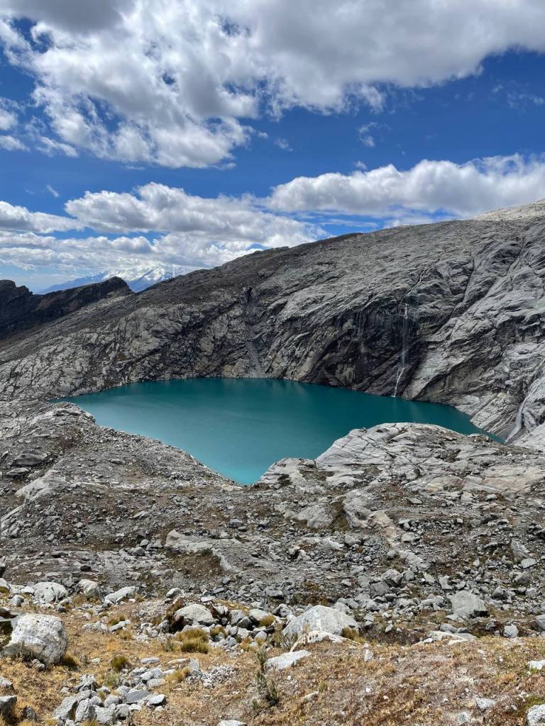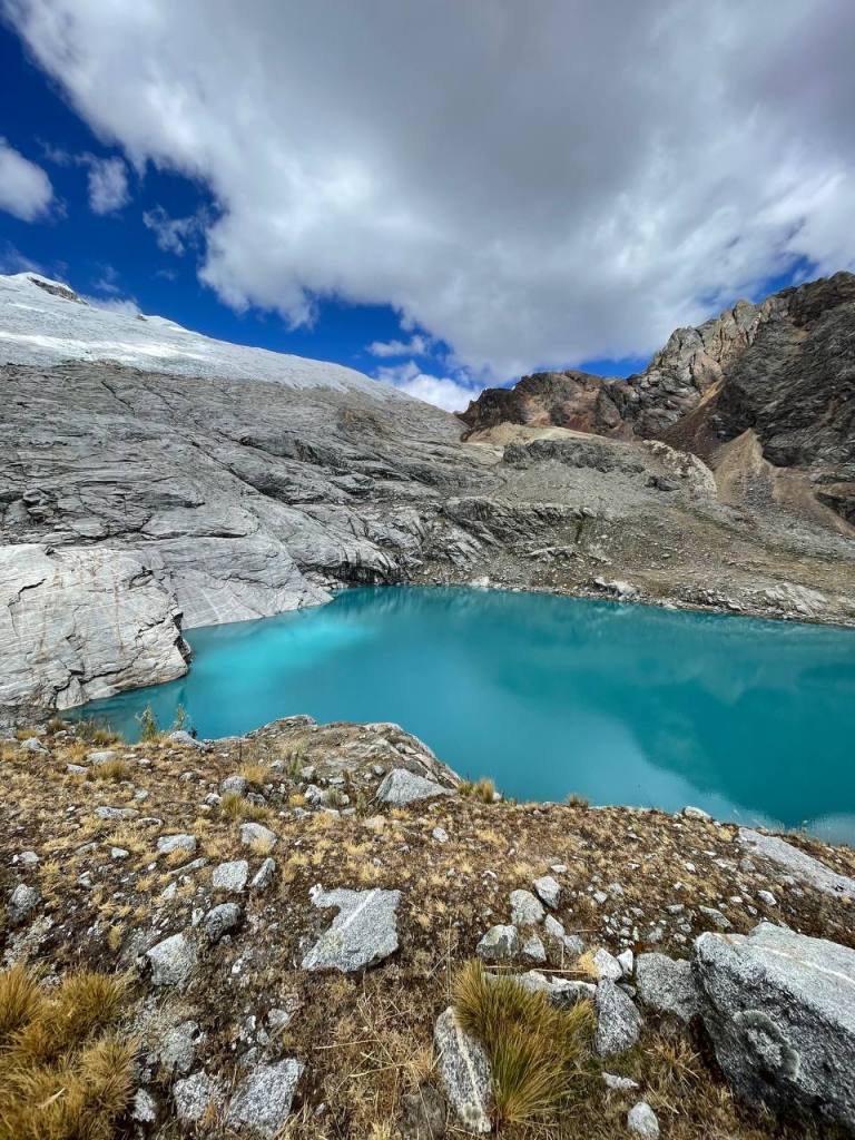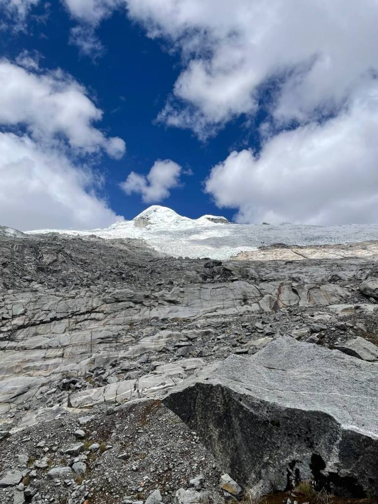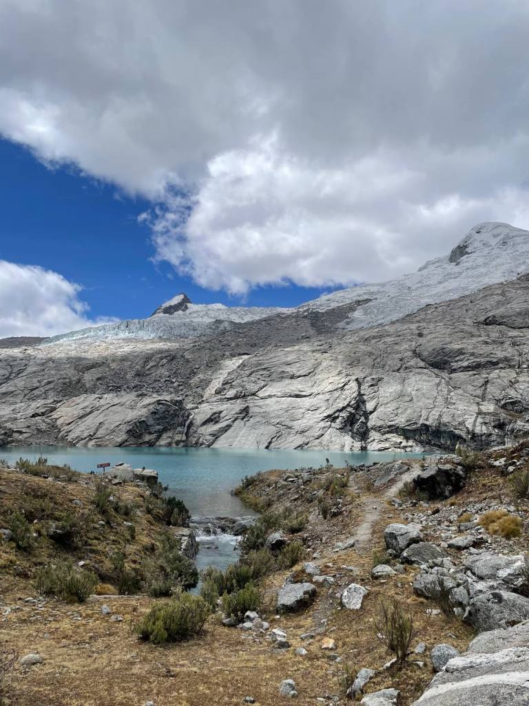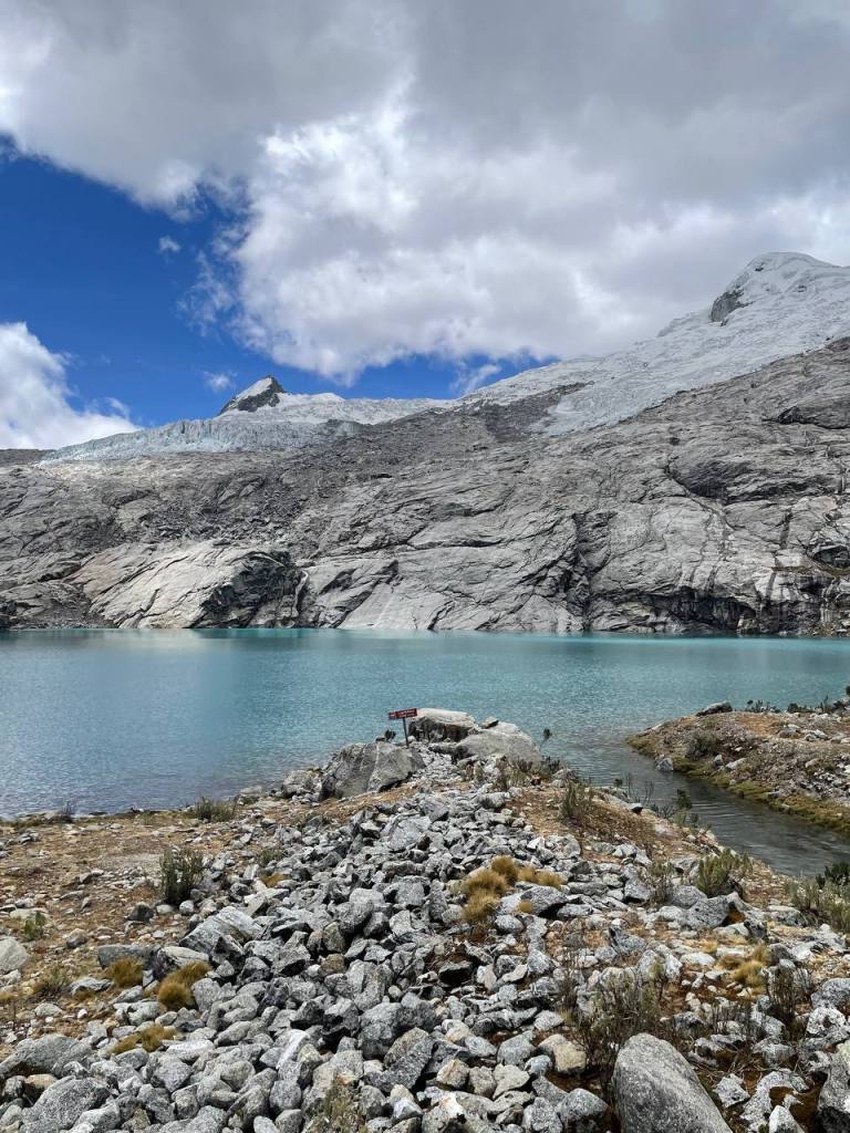 I was soon able to see the lake, but I was adamant to see it up close. So I kept going until I reached its edge. It was considerably colder than Mulluca, both due to being higher and shielded from the sun by the mountains. I knelt, stared at the glacier in front of me and prayed.