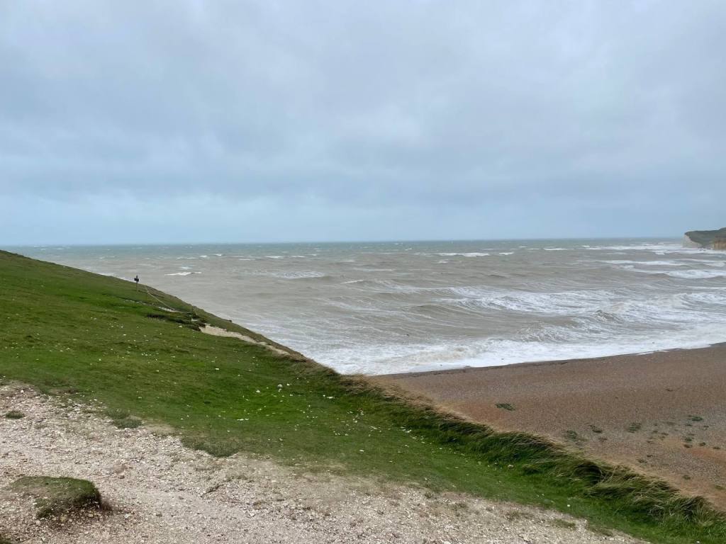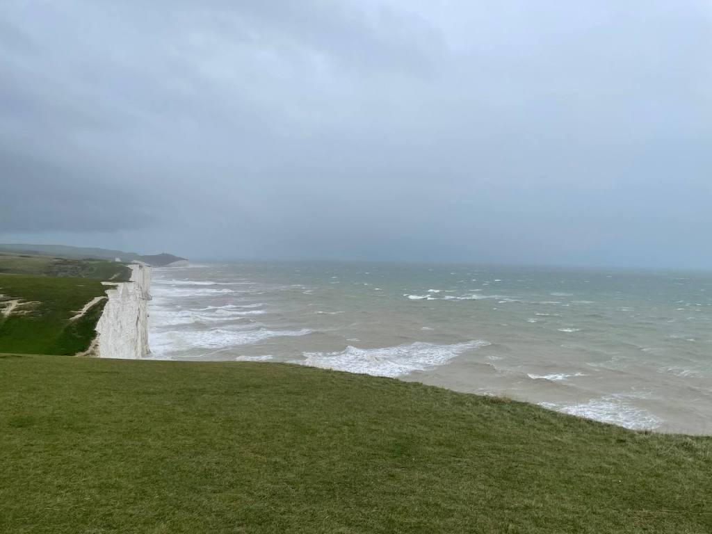 After that bit, the weather turned quite foul again, and the gusts started hitting us hard. My companion was scared, and she clutched on to me and I almost fell with her. She told me that she wanted to go inland and find an alternative route to Eastborne. I told her to do that if she wished, but that the fastest way was to continue for the last few miles. We were quite close to the final descent. That convinced her, and together we trudged on.