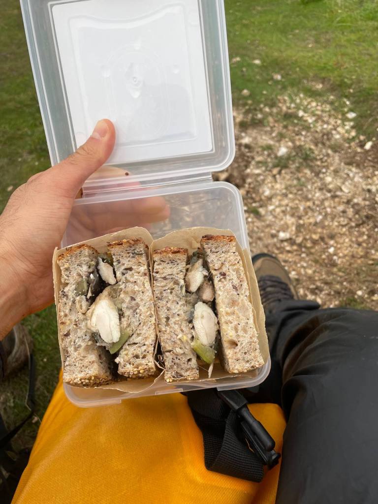 We stopped to have some food before the final leg. I was very happy with my sandwiches, and she with her energy bars. We pushed for Eastborne.