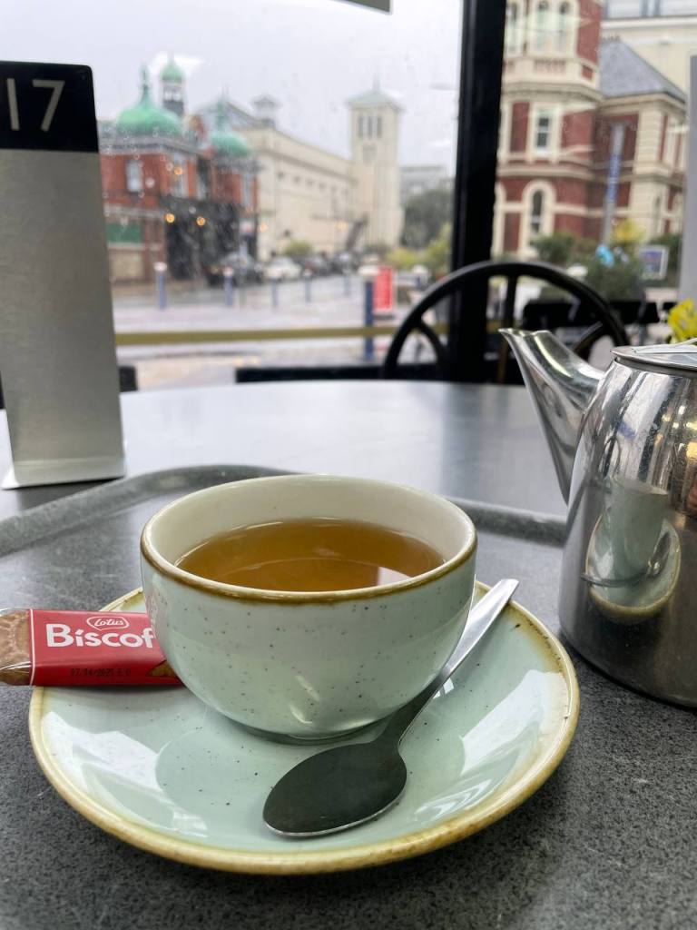 But my desires were put down by another bout of rain, and so I took it as a sign to call it a day. I camped at a strange Italian cafe serving British food. I enjoyed my tea and cream of asparagus soup.
