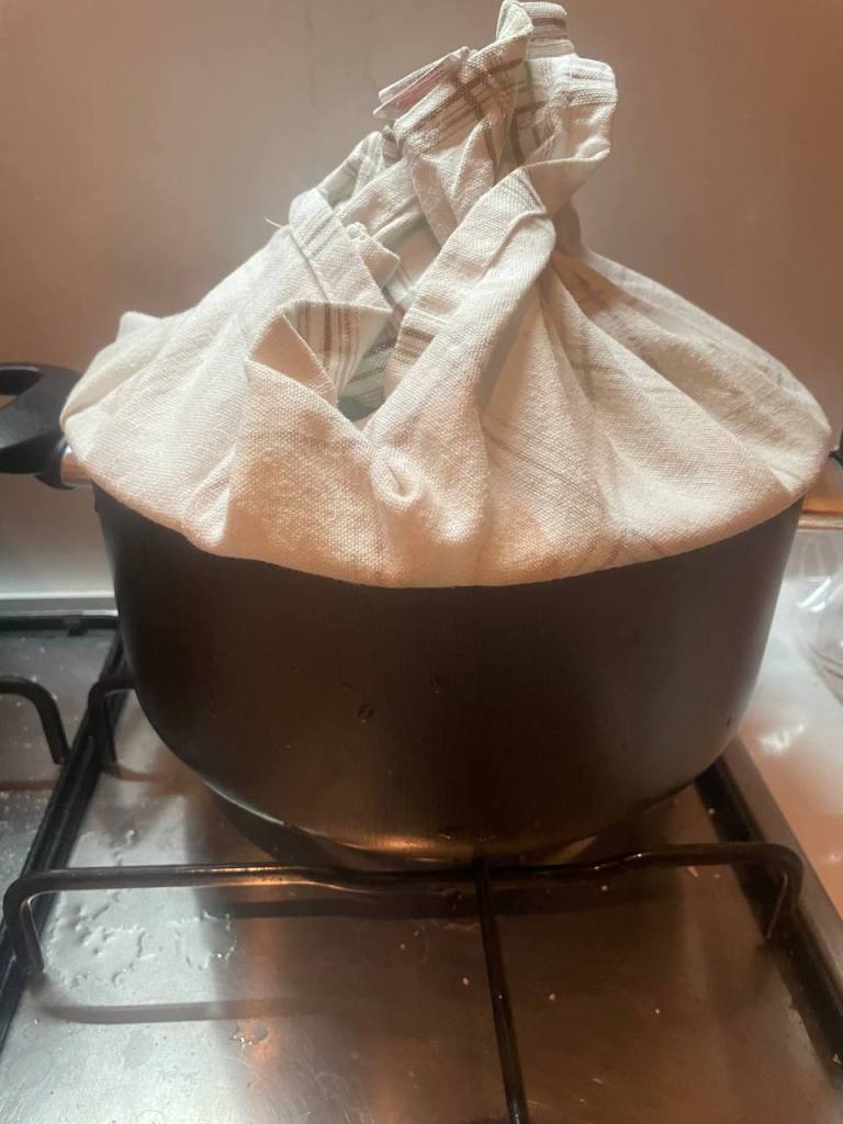 - Cover the pot with a lid that is wrapped around a tea-towel to trap steam, and cook on a slow heat for 40 mins to an hour. If everything is done right, then you’ll be able to flip the pasta onto your plate to see a beautiful golden tahdig on top!